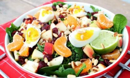 Lunchsalade met bietjes, sinaasappel en pijnboompitten |