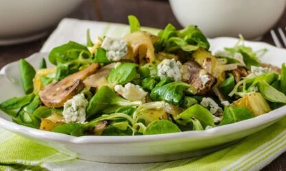 Geitenkaassalade met gebakken paddenstoelen en appel |