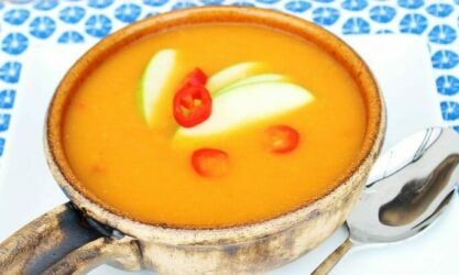 Avocado-komkommergazpacho met asperges en rivierkreeftjes |